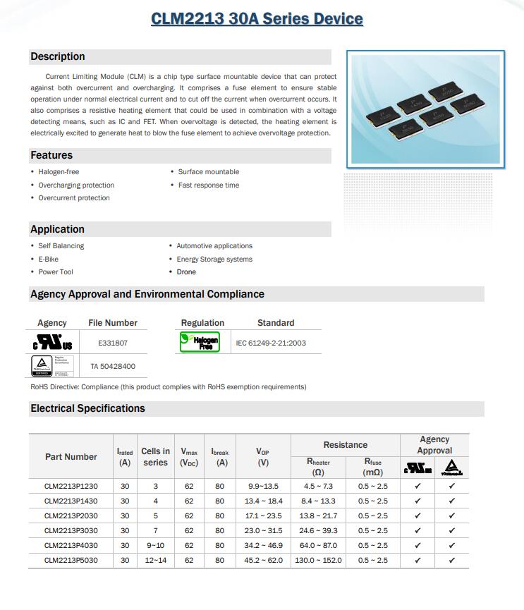 產品名稱: CLM2213 30A Series Device 三端保險絲