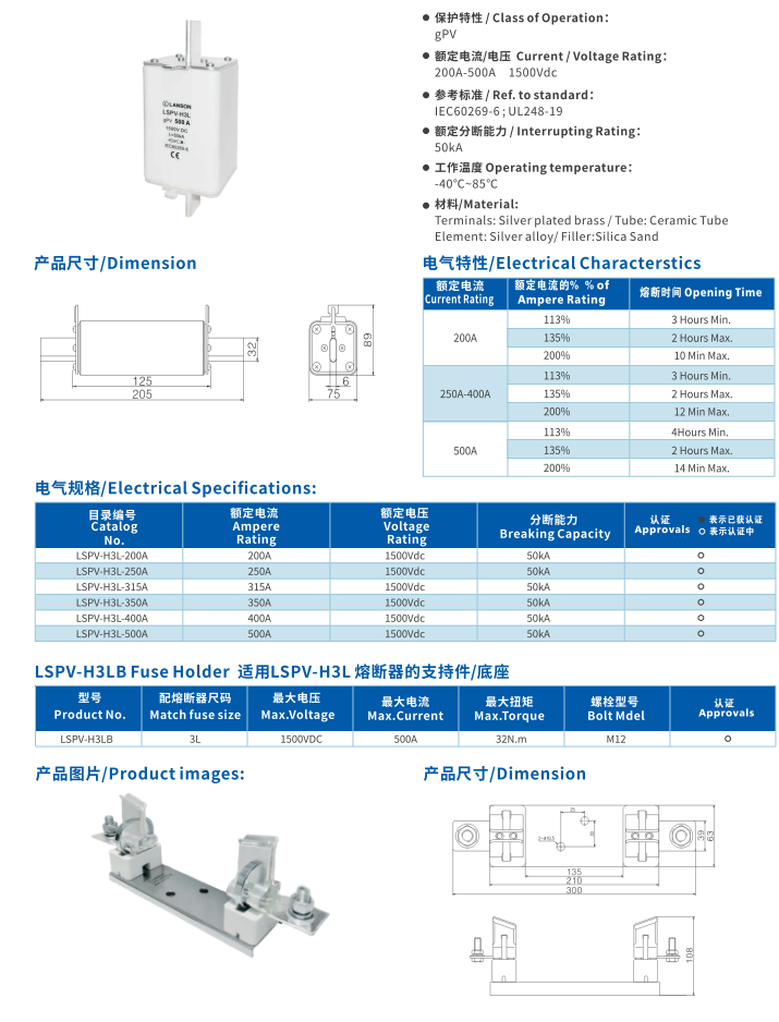 簡(jiǎn)述: 光伏熔斷器 LSPV-H3XLl Photovoltaic Fuse