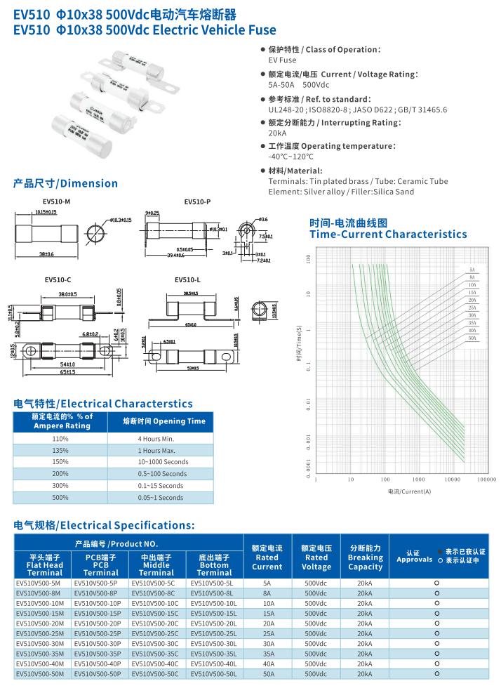產品名稱: 電動汽車熔斷器EV510 10*38 Electric Vehicle Fuse