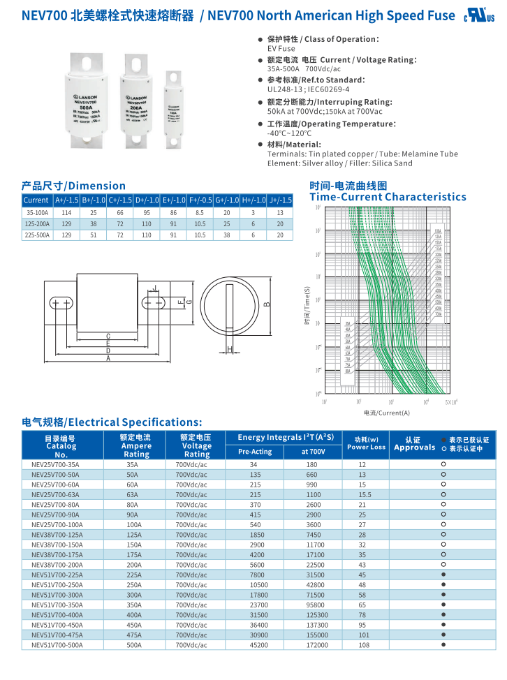 產品名稱: 北美螺栓式快速熔斷器NEV700 North American High Speed Fuse