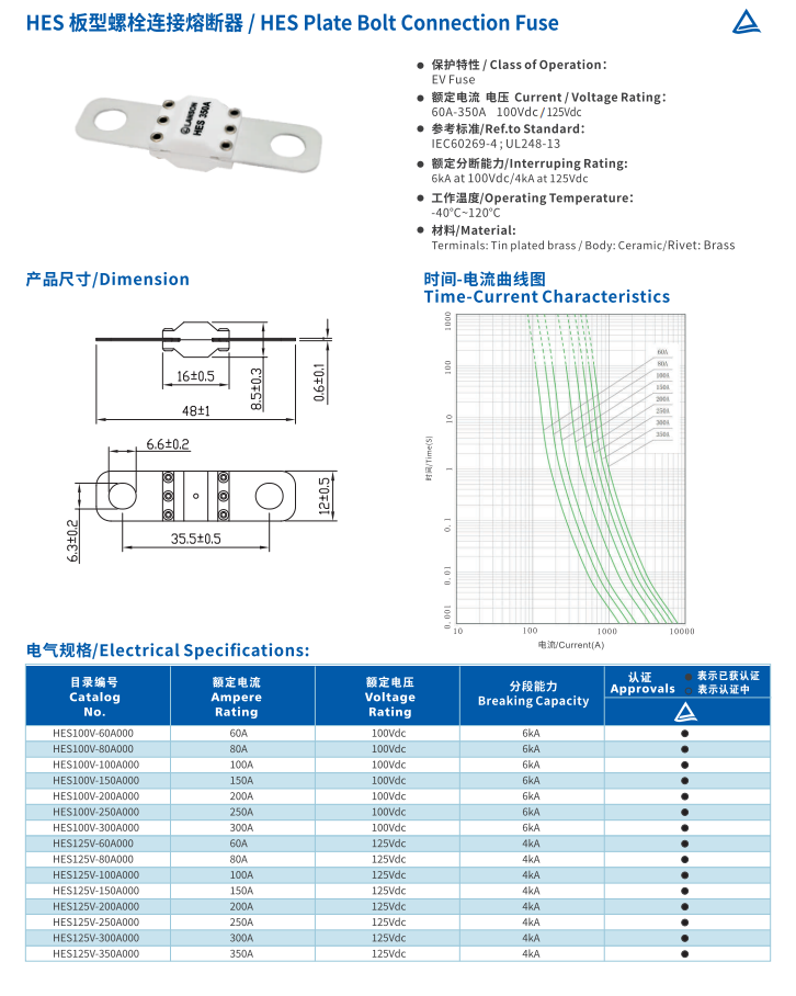 產品名稱: 板型螺栓連接熔斷器HES Plate Bolt Connection Fuse
